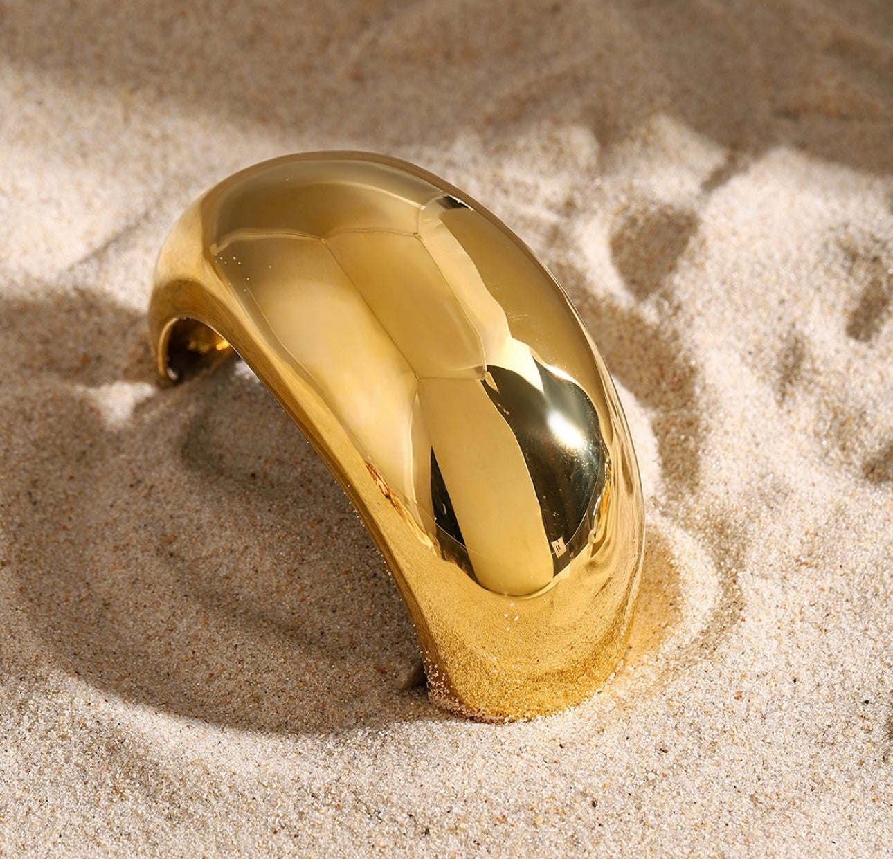 Made of stainless steel and 18k gold-plated for a luxe touch, our bold pony cuff with a high-quality black hair tie is the ultimate upgrade to any ponytail.